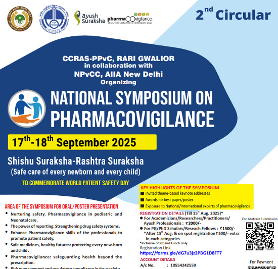 National Symposium on Pharmacovigilance, Organized by RARI-Central Council for Research in Ayurvedic Sciences, Gwalior.
