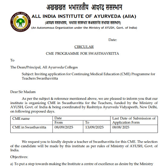 Continuing Medical Education (CME) Programme for Teachers of Swasthavritta, Organized by All India Institute of Ayurveda, New Delhi.
