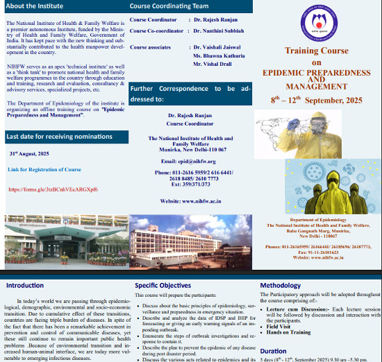 Training Course on Epidemic Preparedness and Management, Organized by National Institute of Health and Family Welfare, New Delhi.