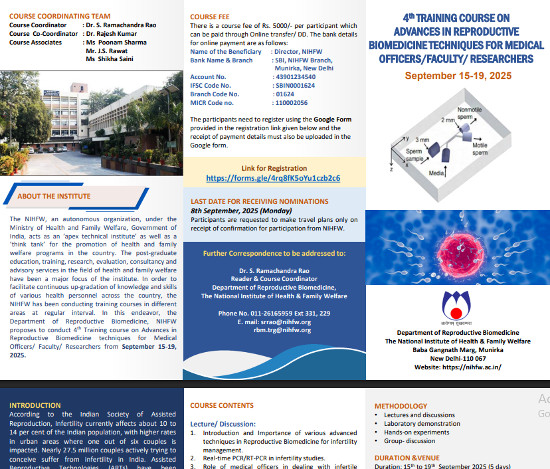 4th Training Course on Advances in Reproductive Biomedicine Techniques for Medical Officers / Faculty / Researchers, Organized by National Institute of Health & Family Welfare, New Delhi.