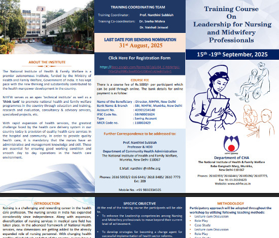 Training Course on Leadership for Nursing and Midwifery Professionals, Organized by National Institute of Health & Family Welfare, New Delhi.