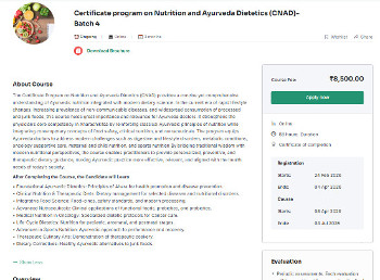 Admission Notice for Certificate Program on Nutrition and Ayurveda Dietetics, Kottakkal Ayurveda School of Excellence.