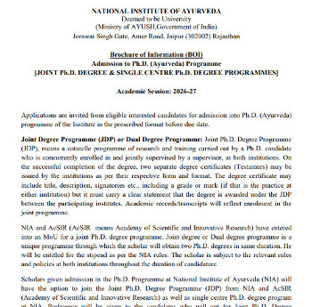 Admission Notice for Ph.D. (Ayurveda) Programme, National Institute of Ayurveda, Jaipur.