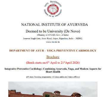 Admission Notice for Certificate Course on Integrative Preventive Cardiology: Combining Ayurveda, Yoga, and Modern Aspects for Heart Health, National Institute of Ayurveda, Jaipur.