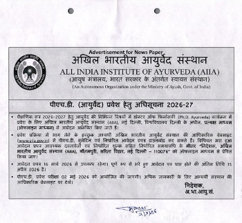 Admission Notice for Doctor of Philosophy in Ayurveda (Ph.D. Ayurveda) Program, All India Institute of Ayurveda, New Delhi.