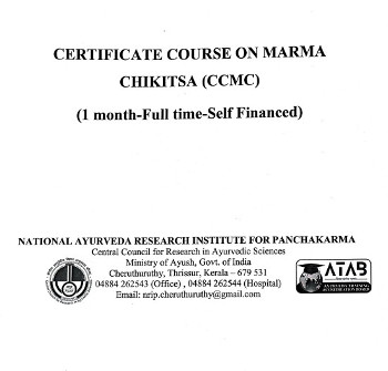 Admission Notice for Certificate Course on Marma Chikitsa, National Ayurveda Research Institute for Panchakarma, Kerala.