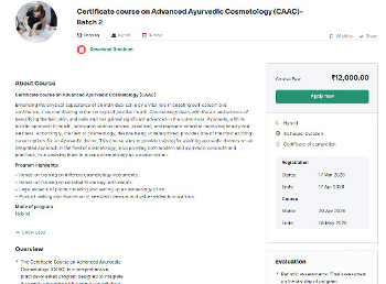 Admission Notice for Certificate Course on Advanced Ayurvedic Cosmetology, Kottakkal Ayurveda School of Excellence.