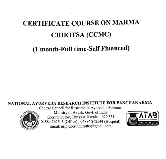 Admission Notice for Certificate Course on Marma Chikitsa (CCMC),