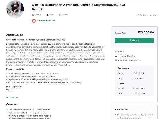 Admission Notice for Certificate Course on Advanced Ayurvedic Cosmetology,