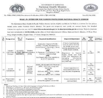 Walk-in Interview for the post of Consultant, National Health Mission, Bangaluru.
