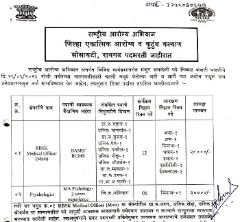 Vacancy for the post of Medical Officer (Unani), National Health Mission, Raigad.