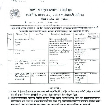Vacancy for the post of Public Health Manager (Unani), Malegaon Municipal Corporation.