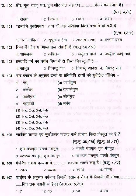BHU Ayurveda PG Entrance Exam 2016 Test Paper