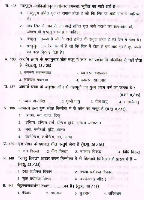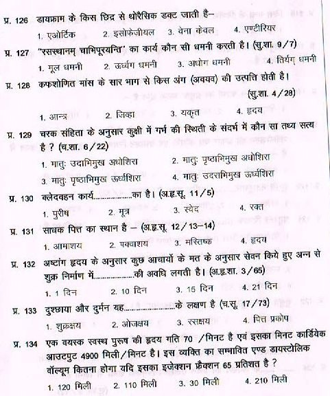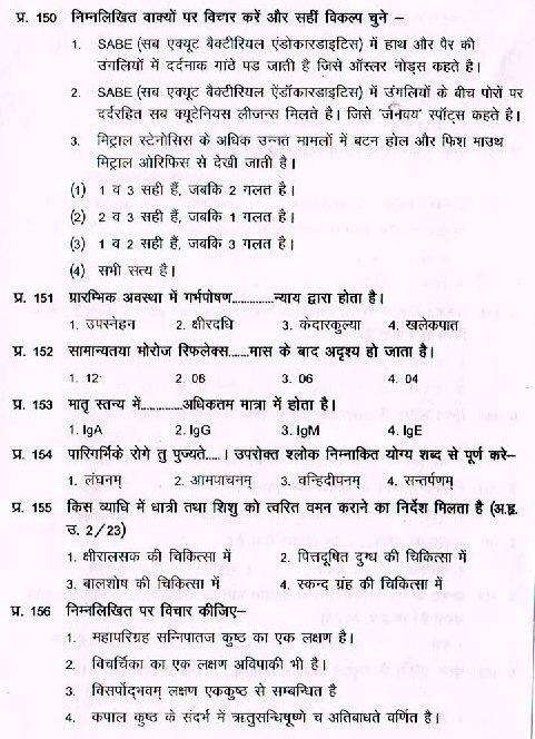 BHU Ayurveda PG Entrance Exam 2016 Test Paper