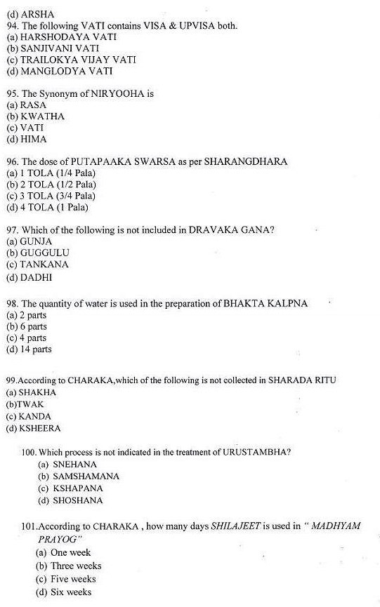 Ayurveda MD/MS Entrance Examination Previous Years Question Papers,ayurveda pg entrance question papers,Ayurveda PG Entrance examination,Sample question papers for Ayurveda