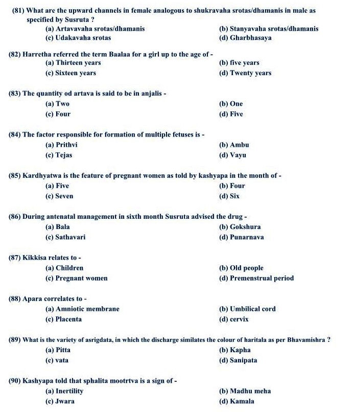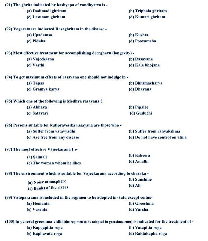 Ayurveda MD/MS Entrance Examination Previous Years Question Papers,ayurveda pg entrance question papers,Ayurveda PG Entrance examination,Sample question papers for Ayurveda
