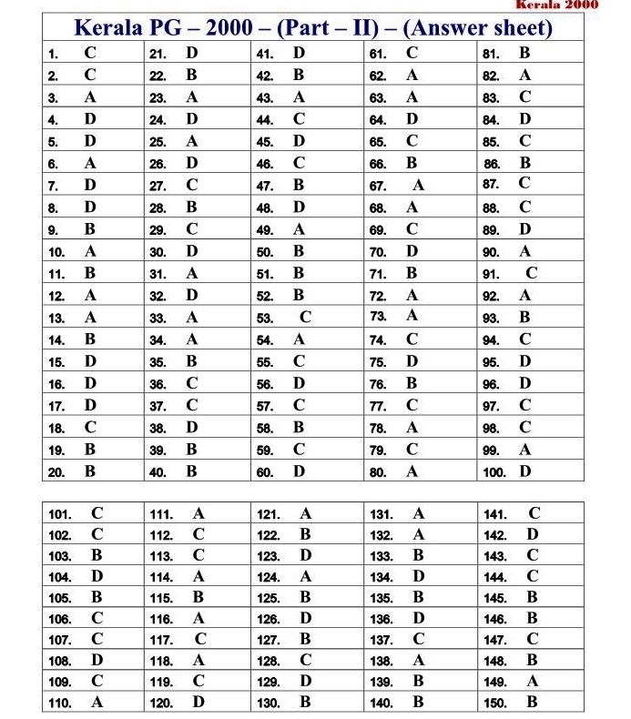 Kerala Ayurveda PG Entrance examination 2000 Test Paper