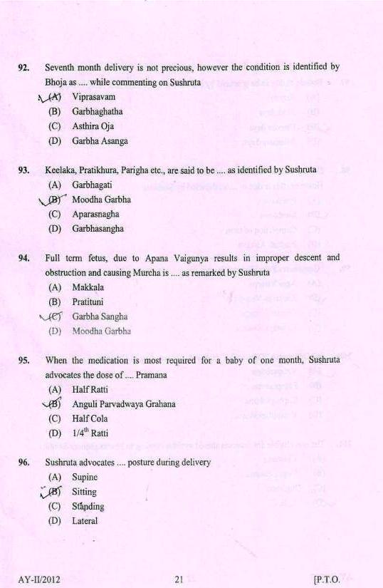 Kerala Ayurveda PG Entrance examination 2012 Test Paper