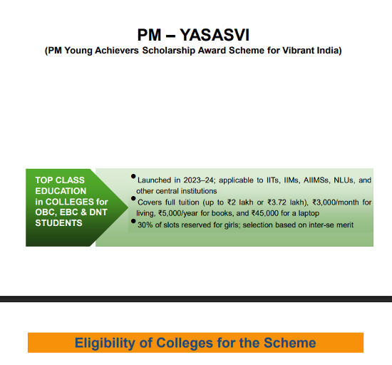 PM - YASASVI (Young Achievers Scholarship Award Scheme for Vibrant India), Organized by Rashtriya Ayurveda Vidyapeeth, New Delhi.