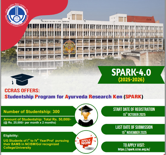SPARK-4.0: Studentship Program for Ayurveda Research Ken, Organized by Central Council for Research in Ayurvedic Sciences, New Delhi.
