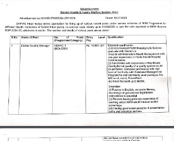 Vacancy for Various AYUSH posts, District Health & Family Welfare Society, Hisar.