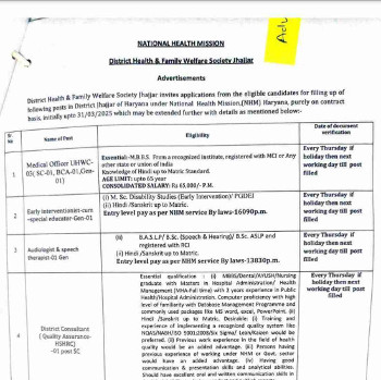 Vacancy for the post of District Consultant AYUSH, District Health & Family Welfare Society, Jhajjar.