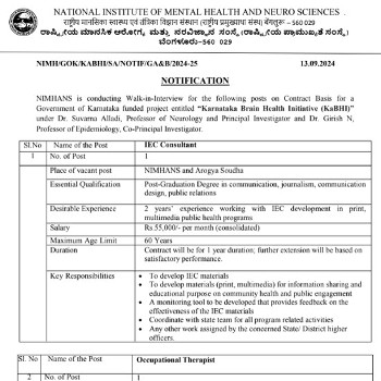 National Institute of Mental Health and Neuro Sciences, Bangalore.