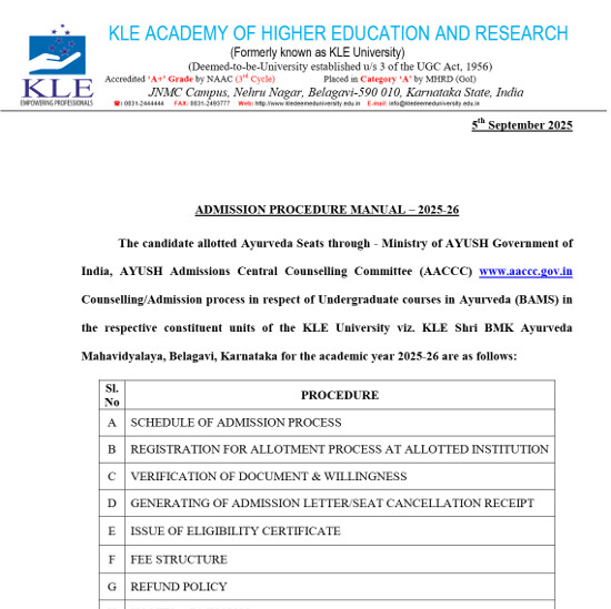 KLE Shri BM Kankanawadi Ayurveda Mahavidyalaya, Belagavi.