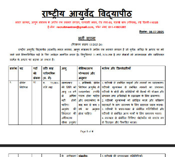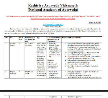 Job Code : 26 Vacancy for Various Ayurveda posts, Rashtriya Ayurveda Vidyapeeth, New Delhi.