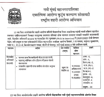 Job Code : 24 Walk-in Interview for the post of Medical Officer, Navi Mumbai Municipal Corporation.