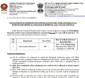 Walk-in Interview for the post of Homeopathy Physician,