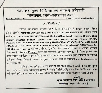 Vacancy for the post of Medical Officer (Homeopathy), Chief Medical and Health Officer, Kondagaon.