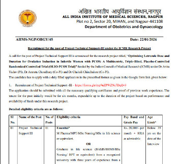 Vacancy for the post of Project Technical Support III (Homeopathy), All India Institute of Medical Sciences, Nagpur.