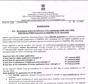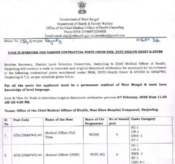 Walk-in Interview for the post of Medical Officer (Unani), National Health Mission, Darjeeling.