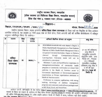 Vacancy for the post of District Nutrition Coordinator (Unani), National Health Mission, Madhya Pradesh.