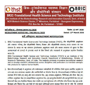 Vacancy for the post of Consultant (Yoga), Translational Health Science and Technology Institute, Faridabad.