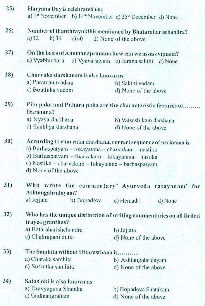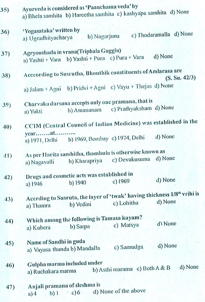 Ayurveda Medical Officer previous years question papers,ayurveda upsc previous years question papers,ayurveda previous years question papers