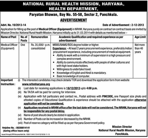 Last Date : 19.01.2014 (upto 5:00 PM).