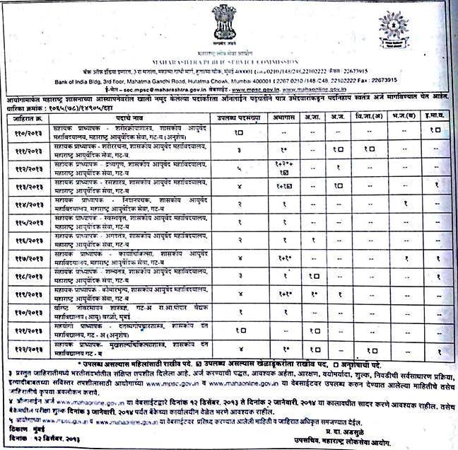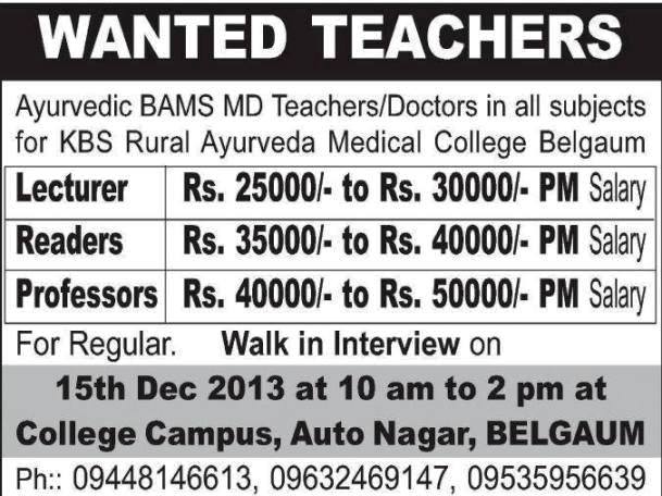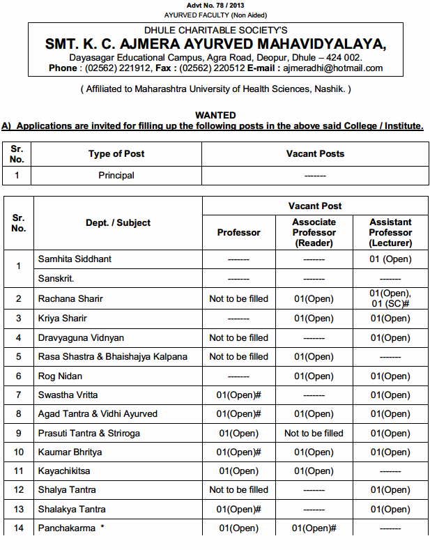 Vacancies for the Posts of Professor,Associate Professor(Reader) and Assistant Professor(Lecturer) Smt.K.C.Ajmera Ayurved Mahavidyalya, Dhule.