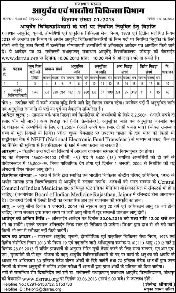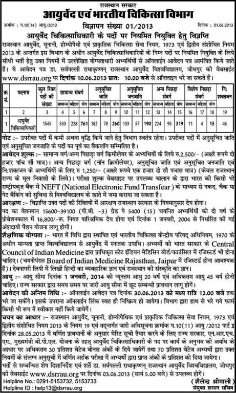 Jobs Opportunities in Ayurveda June 2013,Ayurveda jobs June 2013,Government Jobs,Jobs for bams doctors,BAMS Doctor jobs |