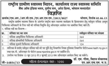 Vacancies for the Post of Medical Officer (Ayurveda), NRHM,Government of Madhya Pradesh.