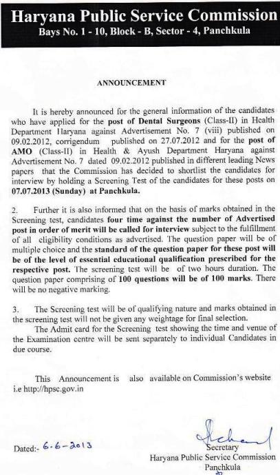 Vacancy for the Posts of Ayurvedic Medical Officer(AMO), Health & Ayush Department,Haryana Public Service Commission(HPSC).