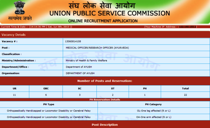 Vacancies for the Post of Medical Officer/Research Officer (Ayurveda), Ministry of Health & Family Welfare,Department of AYUSH,UPSC.