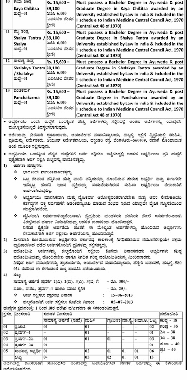 Vacancy for the Posts of Lecturer , Hubli Ayurveda Mahavidyalaya, Hubli,Karnataka.