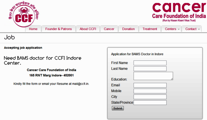 Need BAMS Doctor for Cancer Care Foundation of India,Indore.