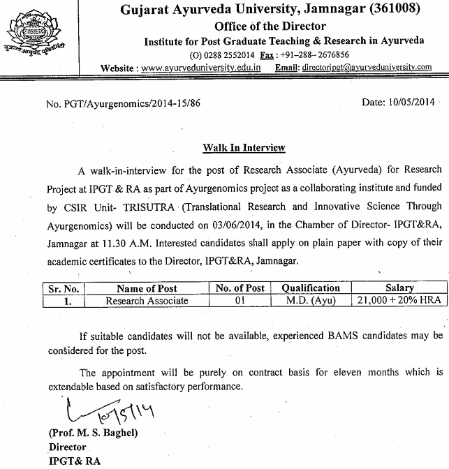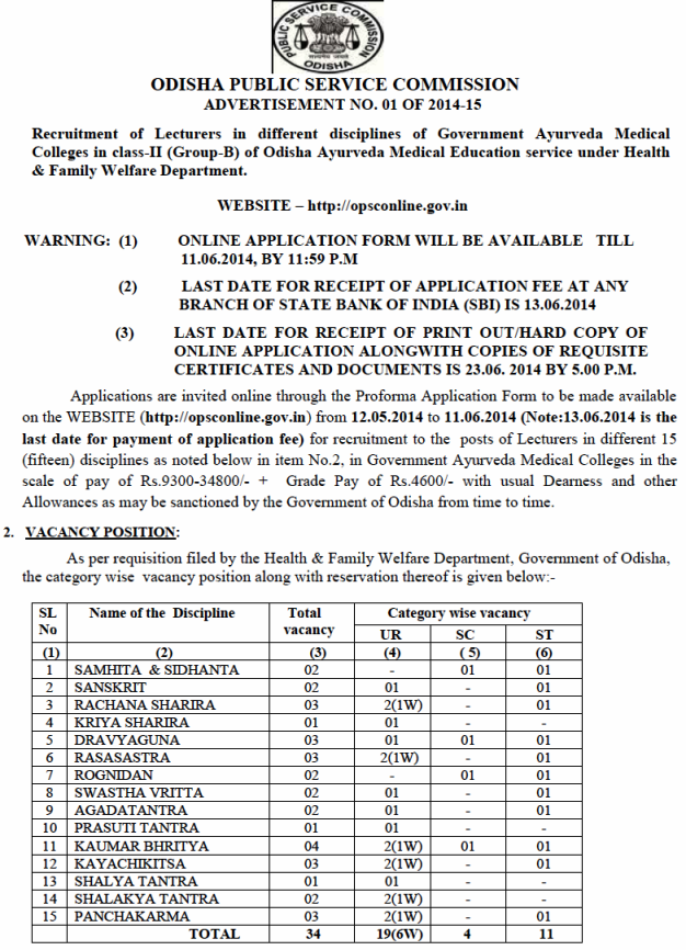 Vacancy for the Post of Lecturers in different disciplines of Government Ayurveda Medical Colleges, Odisha Ayurveda Medical Education service under Health