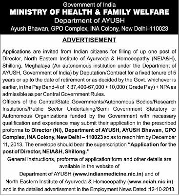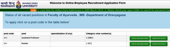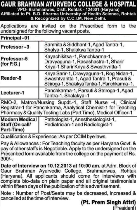 Vacancies for Posts of Professor,Assistant Professor and Reader In various Departments of Faculty of Ayurveda IMS,BHU.