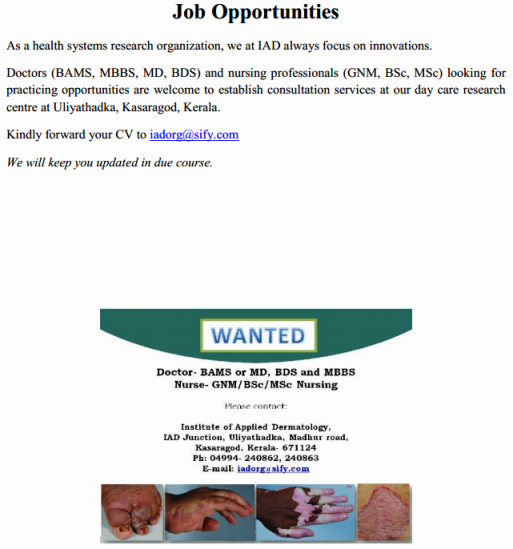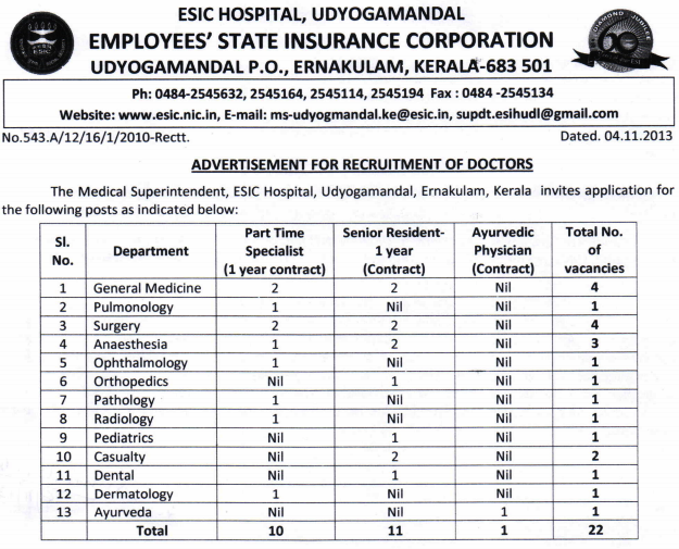 Walk-in-Interview for Posts of Ayurvedic Physician, Employees' State Insurance Corporation,Kerala.