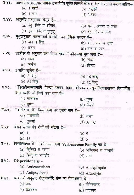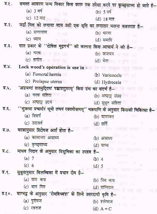 Sample Paper For Ayurveda PG Entrance Exam