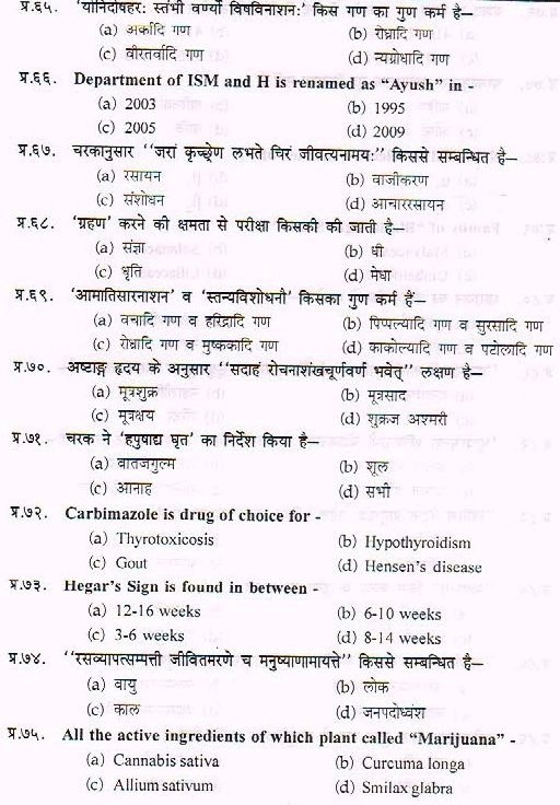 Sample Paper For Ayurveda PG Entrance Exam